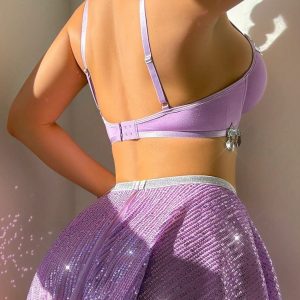 Sparkling Sequin Lingerie Set – Shiny Purple Bralette Skirt with Crystal Tassels