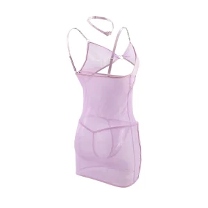 Sheer Mesh Cut-Out Lingerie Dress with Heart Ring Side Buckles – 2 Piece Sexy Nightwear Set