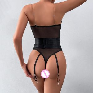 Sexy Mesh Corset Lingerie for Women – Sheer Underwire Bodysuit with Adjustable Garter Straps & Transparent Straps – Black & Red Bustier Teddy