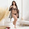 Complete 3-Piece Set: Includes mesh robe with waist tie, sheer triangle bralette, and matching thong panties.