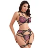 3-Piece Zebra Print Lingerie Set – Harness Bra, Mesh Panty & Garter Belt with Choker