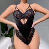 Sexy Black Lace Bodysuit Lingerie for Women Strappy Sheer Mesh One Piece Teddy with Underwire Cups Cut Out Design &amp Adjustable Straps for Nightwear Clubwear Party Outfit