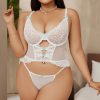 Plus Size White Lace Mesh Corset Lingerie Set with Baby Blue Bows – Sexy Bridal Intimate Wear