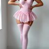 Sexy Corset Lingerie Set with Lace Tutu Skirt – Gothic Black Baby Pink, Adjustable Garter Straps, Bow Choker Included