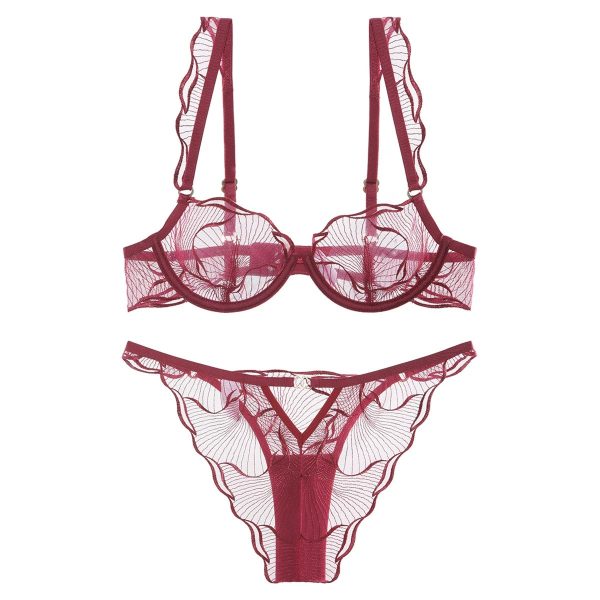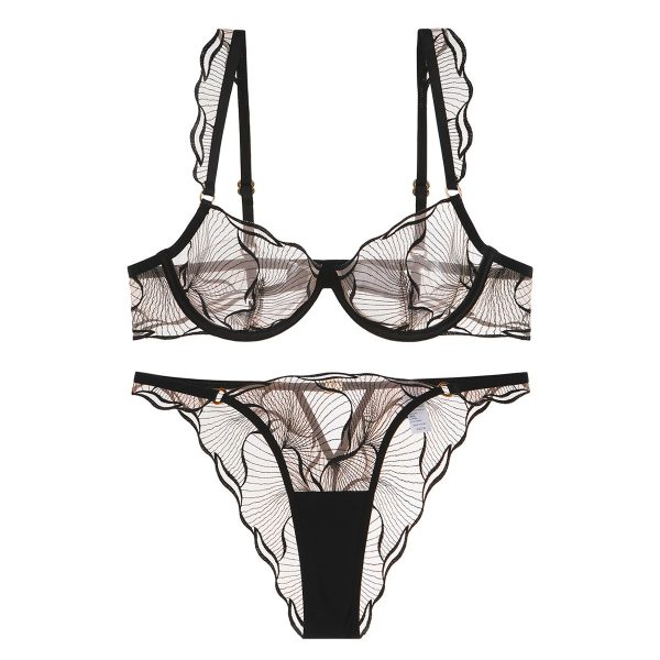 Sexy Sheer Mesh Embroidery Lace Bra and Panty Set – Underwire Ruffle Lingerie for Women, 3 Colors