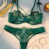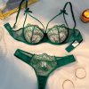 Vintage Floral Embroidery Lace Lingerie Set – Sexy Sheer Bra and Panty Set with Underwire, Mesh Detailing – Available in Black, Green, Wine Red