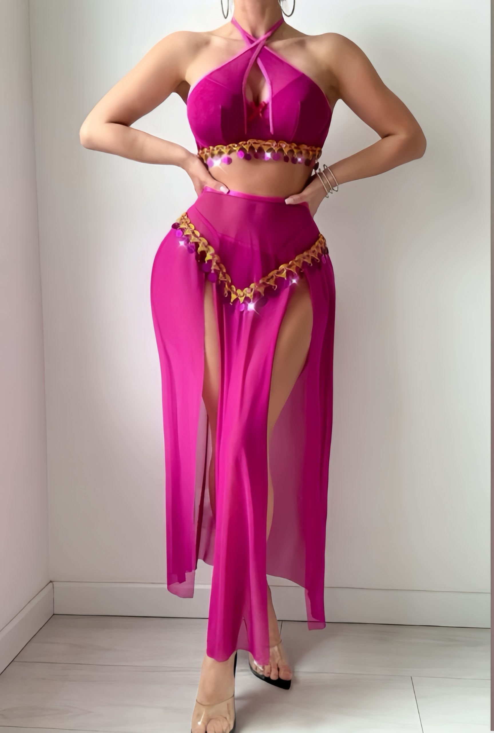 Perfect for Performances or Parties – Ideal for belly dance shows, festival looks, stage performances, themed events, or intimate occasions.